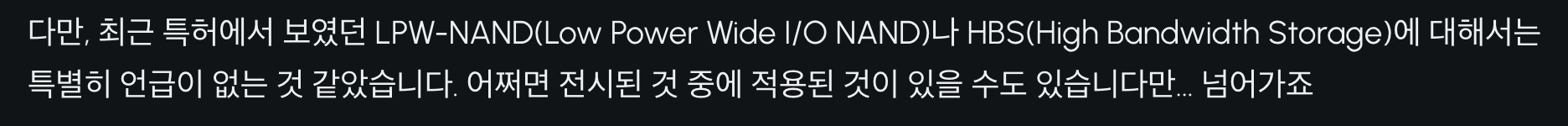 NAND 산업에는 아직도 여러가지 도전과제가 많이 남아있습니다. AI 워크로드부터 시작해 성능 병목이나 신호 품질 등이 해당되는데, 컨트롤러의 개선을 통해 해결할 수 있는 부분도 많습니다.