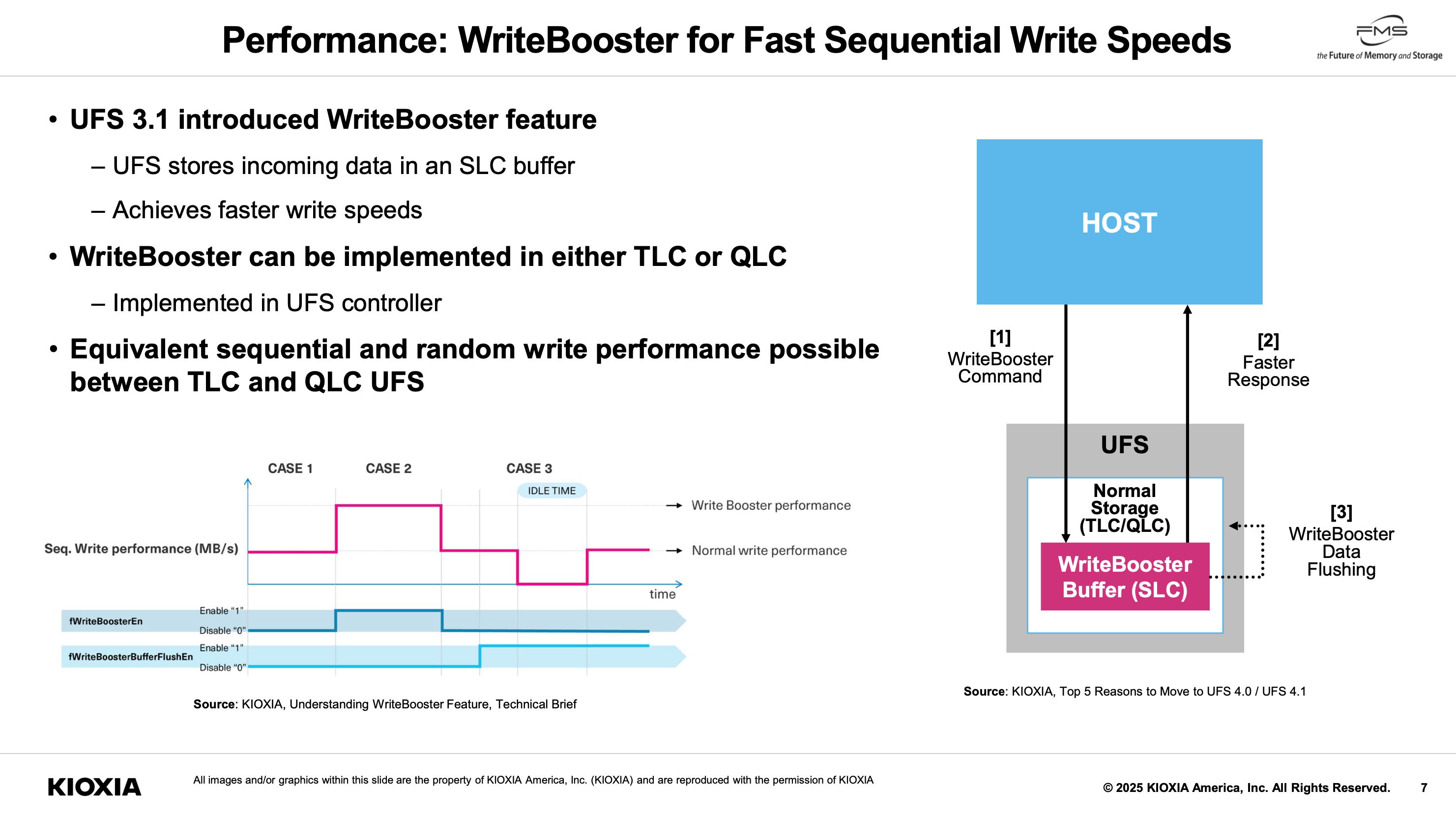우려하는대로 QLC를 UFS에 도입하기엔 문제점이 여럿 존재합니다. 그중 가장 알기 쉬운 부분은 성능, 안정성입니다. Kioxia는 이번 발표로 최소한 성능에 대해서 해결책(?)을 제시했습니다. WriteBooster라는 이름의 SLC 캐시입니다.