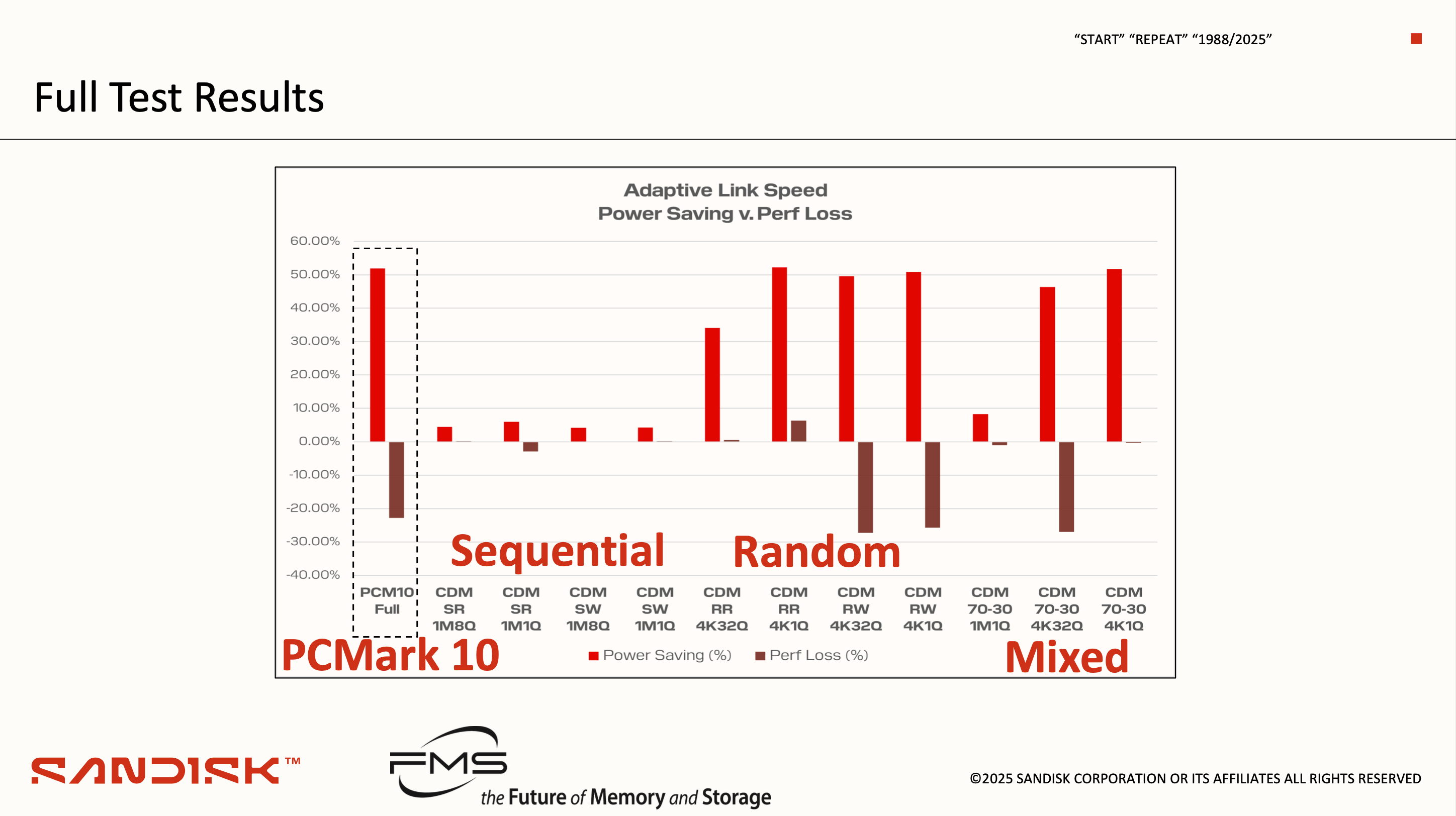 그래서 유휴상태일 때는 link speed를 변경하는 것, 그것이 Adaptive Link Speed Management입니다. 위 슬라이드는 ALSM의 적용 여부에 따른 테스트 결과를 나타냅니다. PCM10 기준으로 50% 가까이 전력을 절감할 수 있었지만, 점수도 20% 가량 낮아졌음을 알려 줍니다.