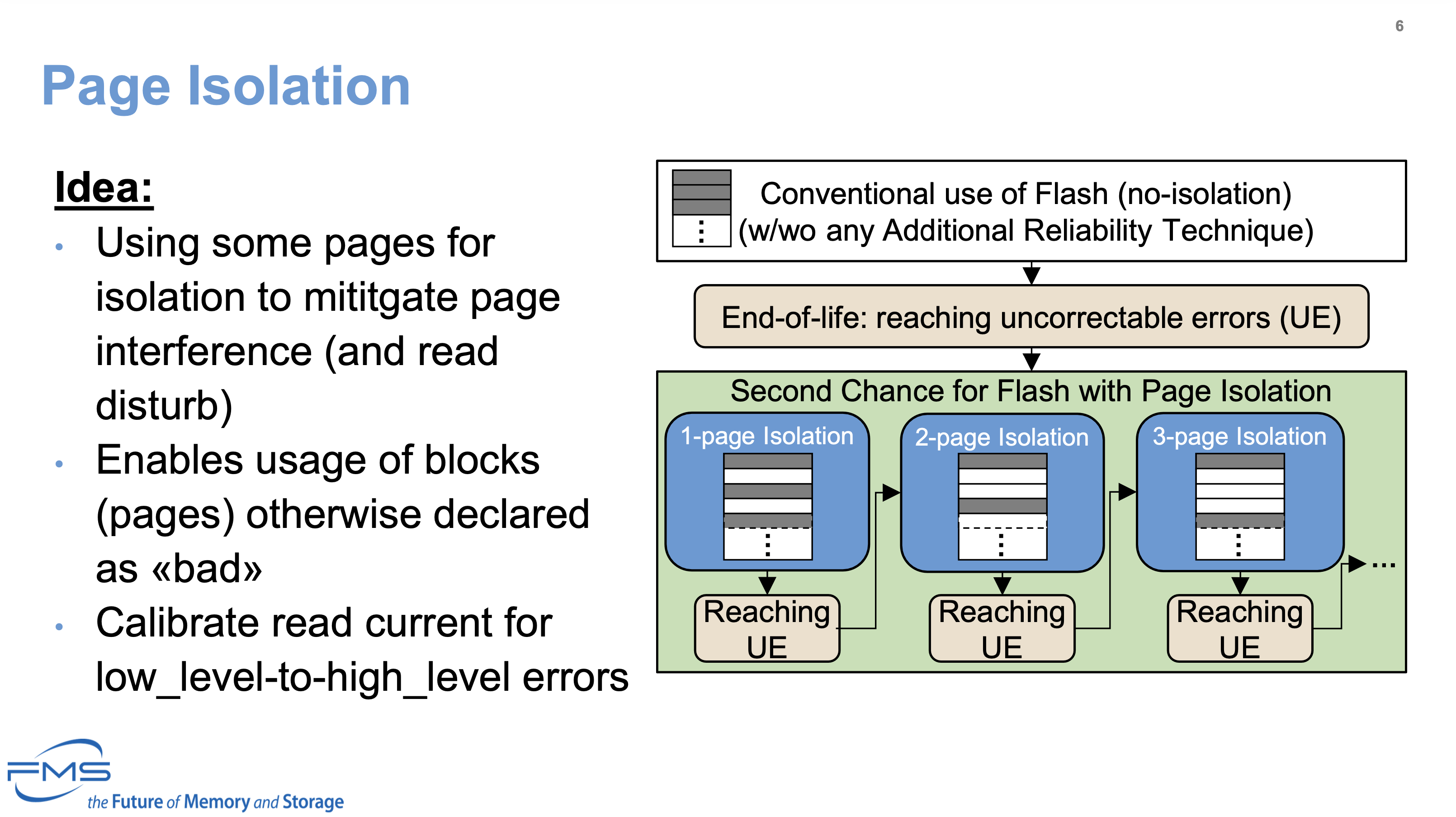 여기선 Page Isolation을 통해 진행했으며, 기본적인 내용은 첨부한 슬라이드와 같습니다. 일부 page를 격리 용도로 사용해 page의 간섭과 읽기 방해를 완화하는 것이며, 이 방법의 장점은 우측의 다이어그램에 나와있습니다.