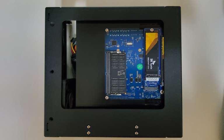 조립된 모습입니다. 제 랙에서 높이는 2U, 너비로는 절반을 차지합니다. 사용된 보드는 ODROID-H4 Plus입니다.