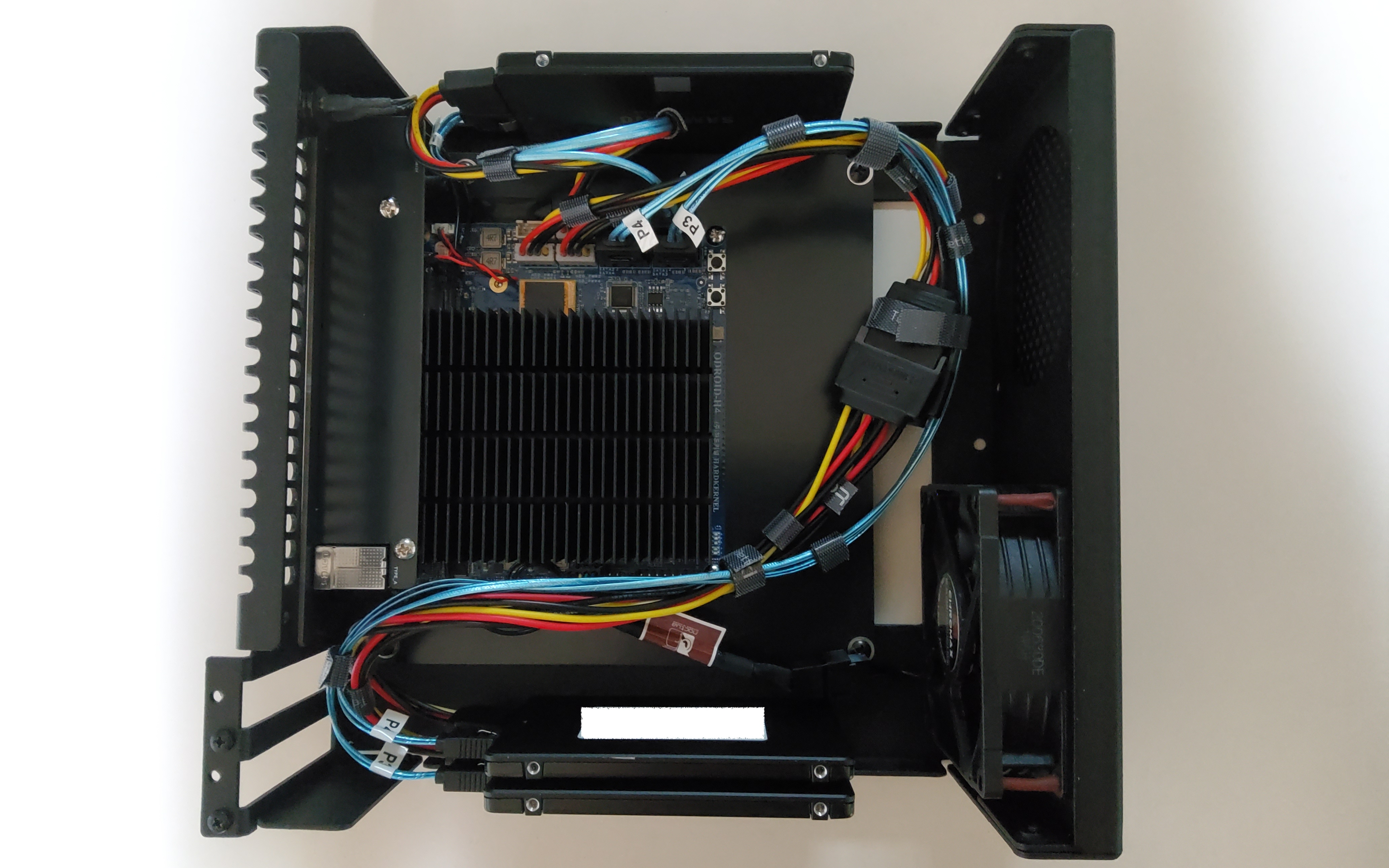 조립된 모습입니다. 제 랙에서 높이는 2U, 너비로는 절반을 차지합니다. 사용된 보드는 ODROID-H4 Plus입니다.