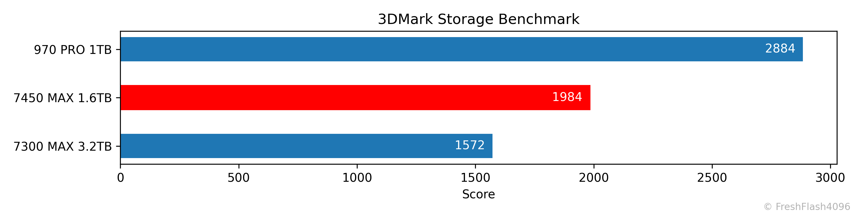 CDM에서 보여준 우수한 결과와 다르게, 3DMark에서는 970 PRO에 상당히 뒤처졌습니다.