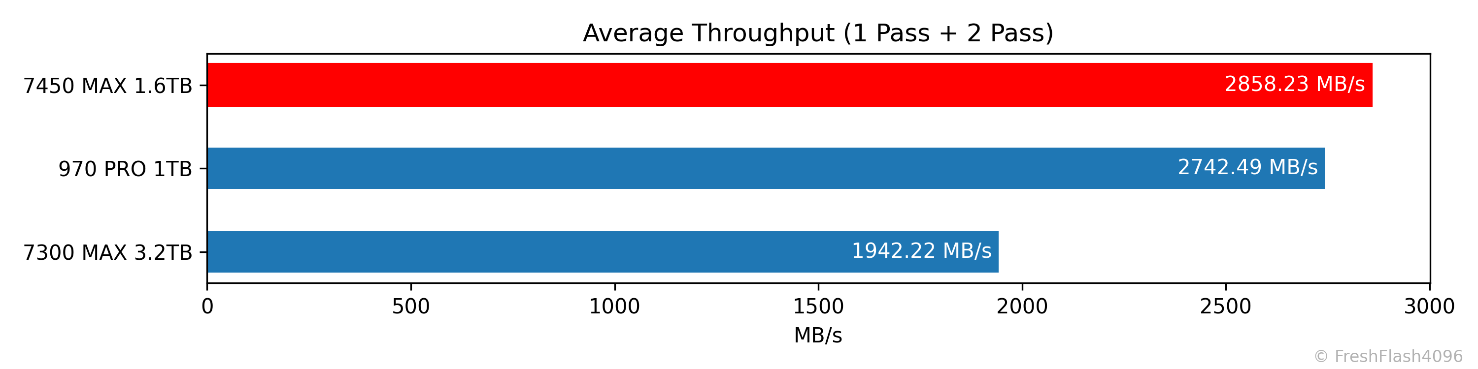 첫 번째와 두 번째의 Fill Drive에 대한 전체 평균값은 2858MB/s로, 970 PRO 보다 앞서는 모습입니다.
