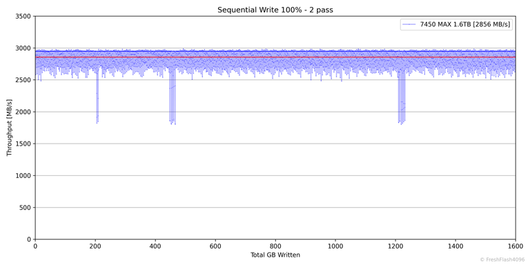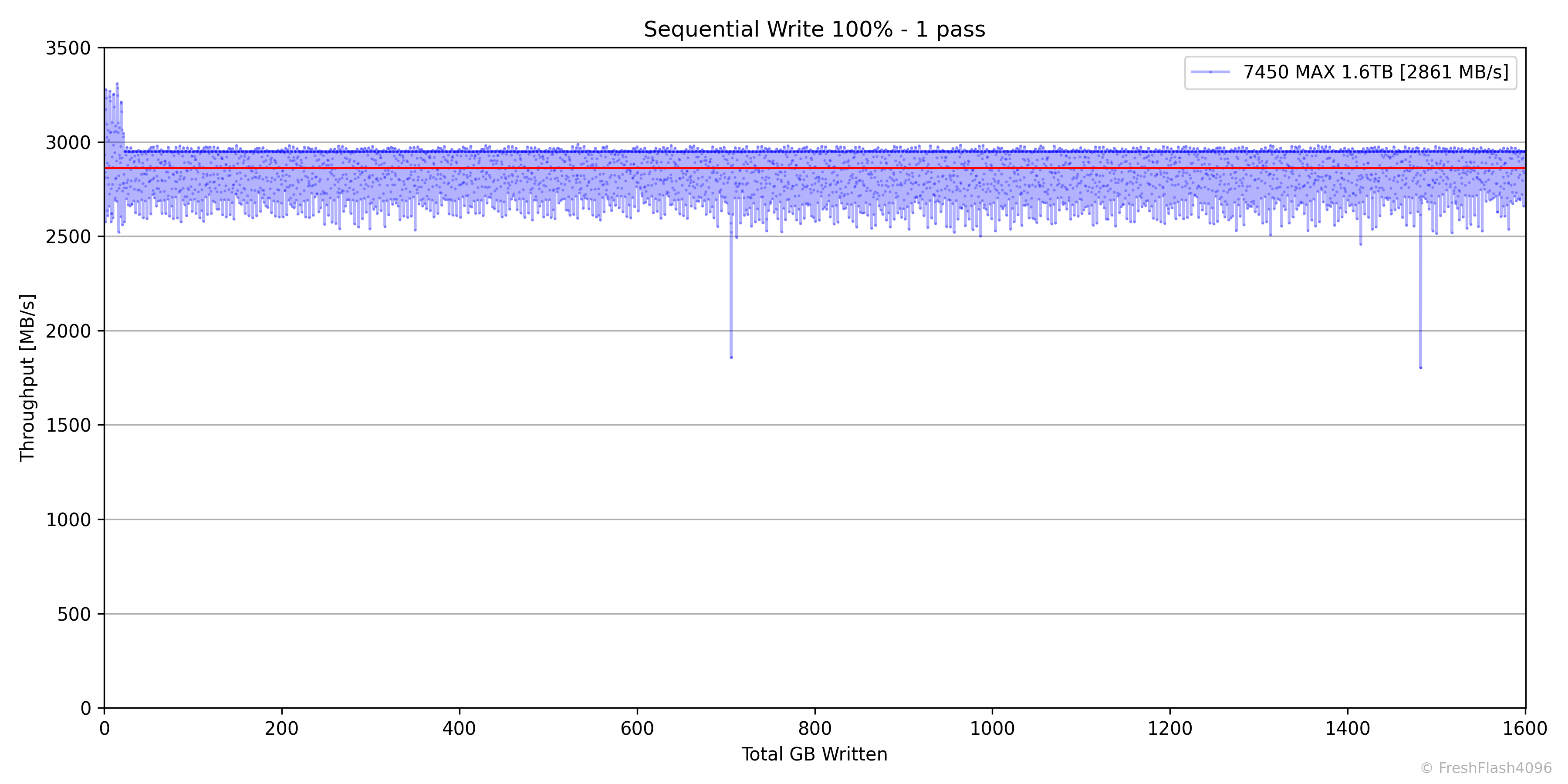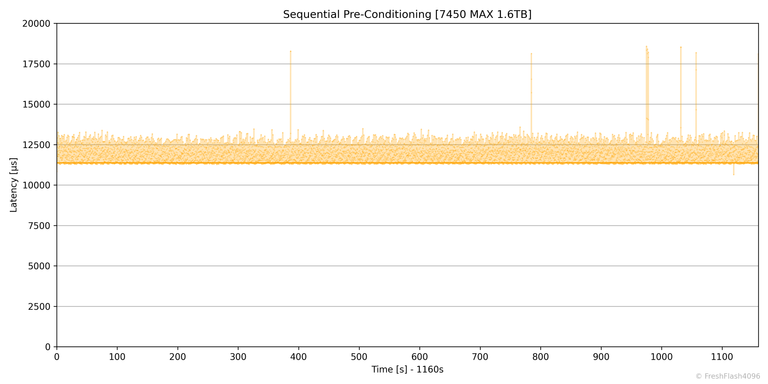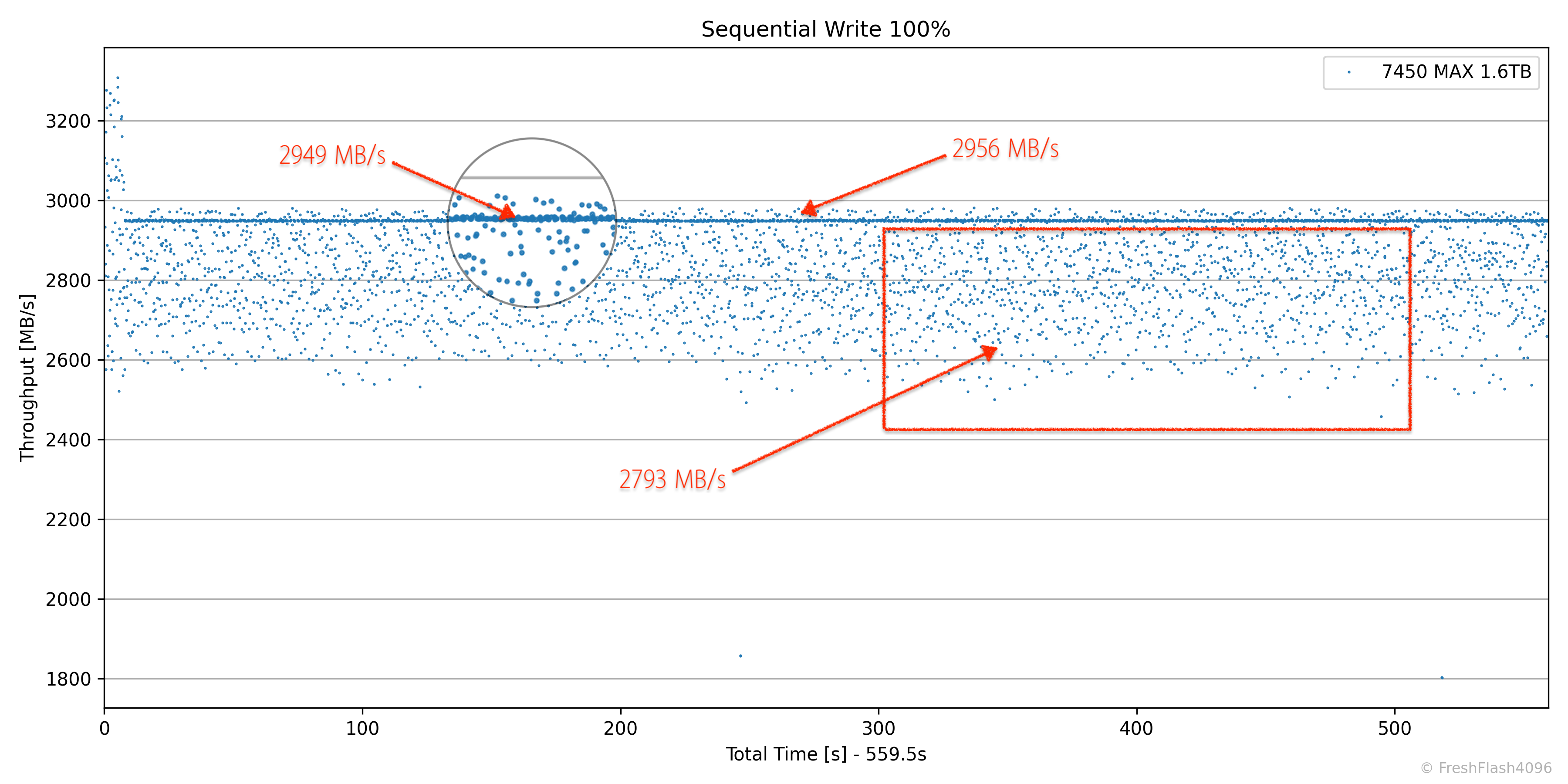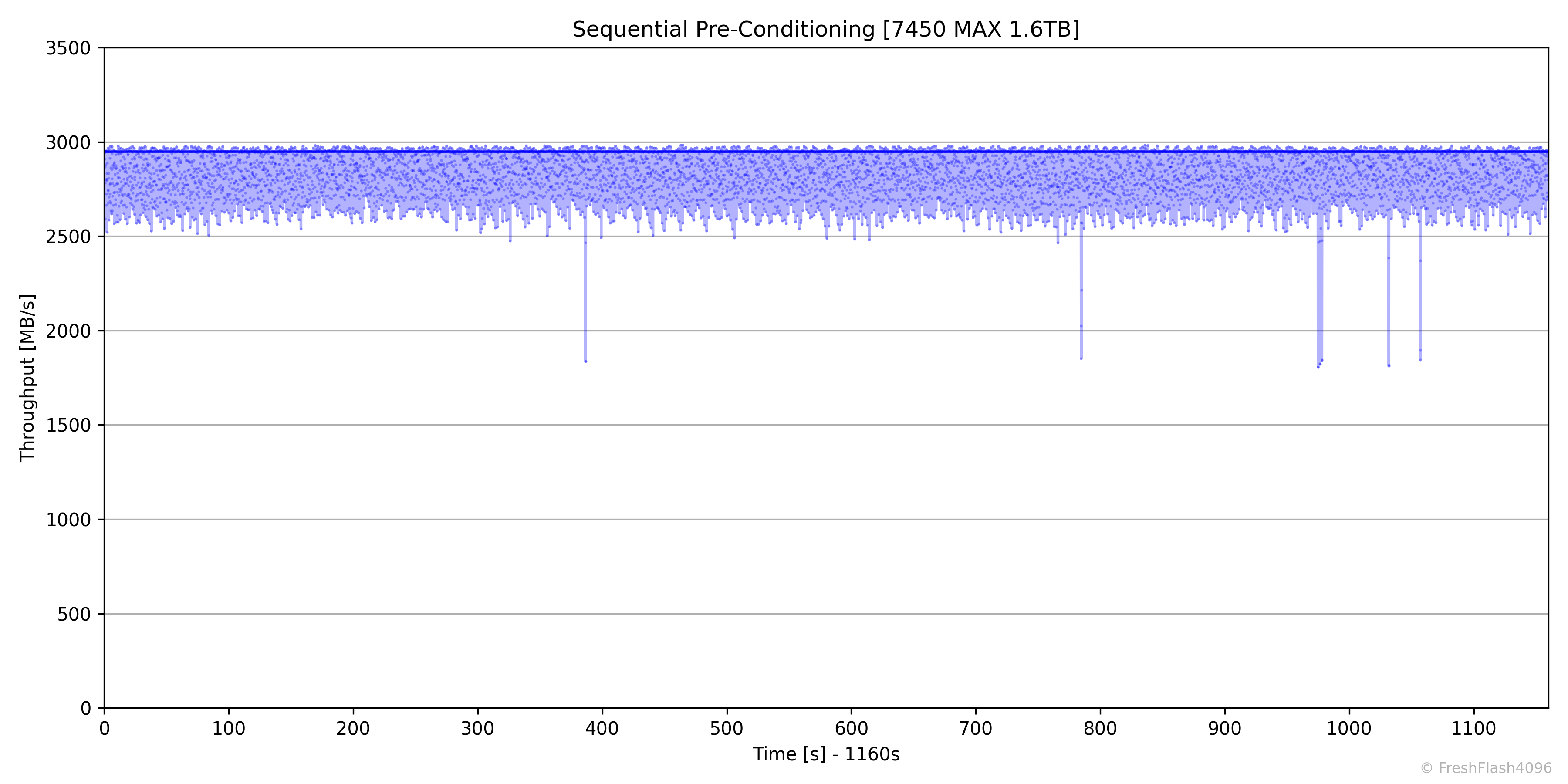 Sequential Pre-Conditioning은 1160초에 걸쳐 수행되었으며, 2802MB/s로 Steady State에 진입하였습니다.