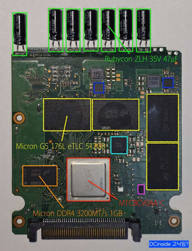 컨트롤러는 Micron MTCBCV0AA:C를 사용했습니다. Micron의 in-house controller로, 상세한 정보는 공개되어 있지 않습니다. 10여 년 전에 인수한 Tidal Systems를 계속해서 유효하게 굴리는 모습이네요.