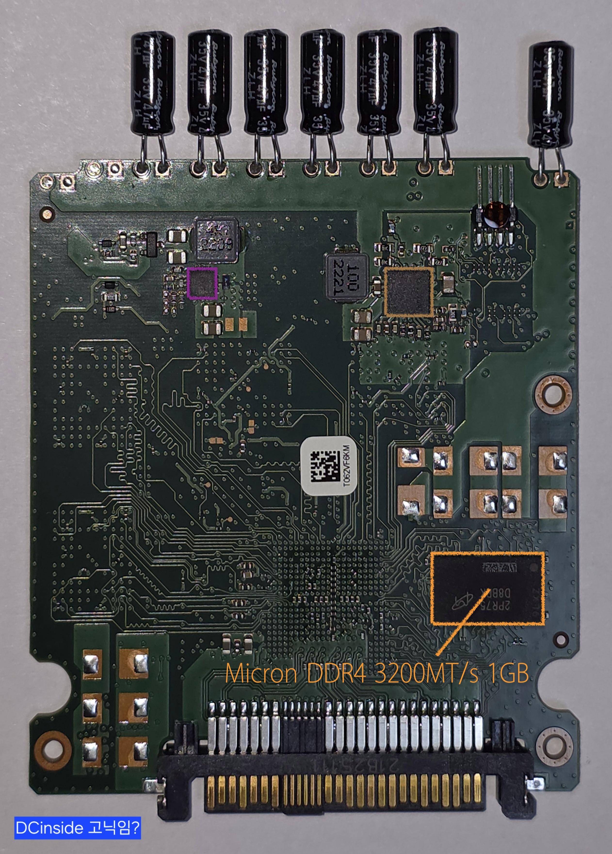 DRAM은 Micron MT40A512M16TB-062E:R이 실장되었습니다. DDR4 3200MT/s CL22 8Gb의 스펙을 가지고 있으며, 후면에도 실장되어 총 2GB의 용량을 가집니다.