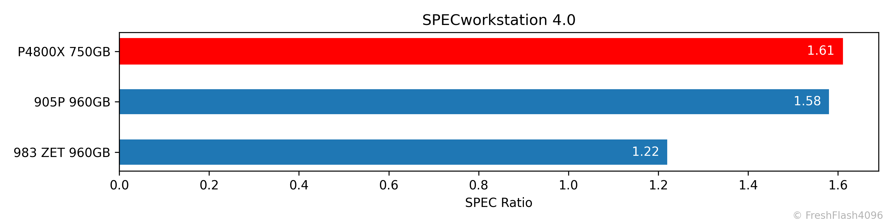 전체에 대한 평균값은 P4800X가 가장 뒤처졌습니다.