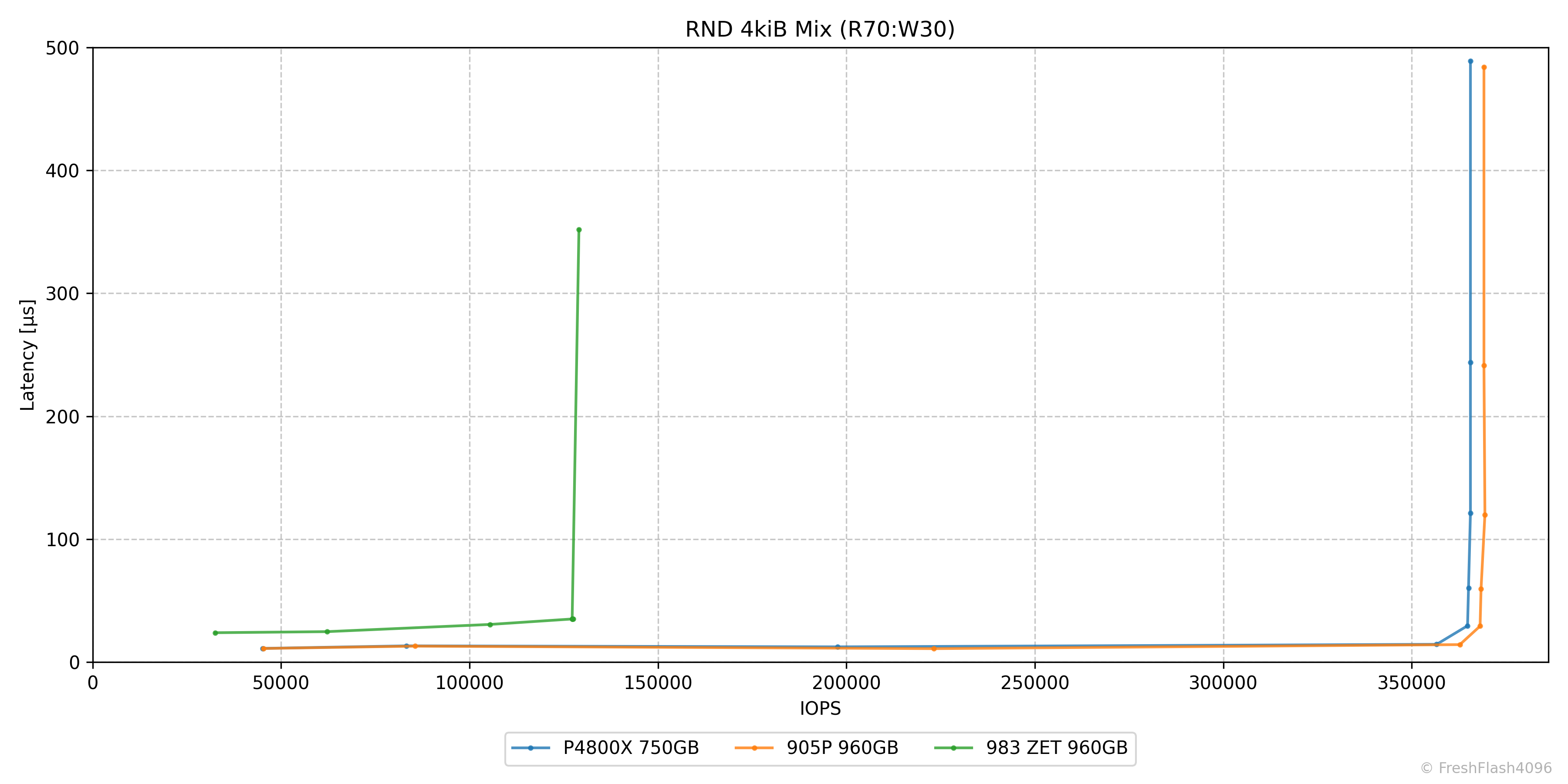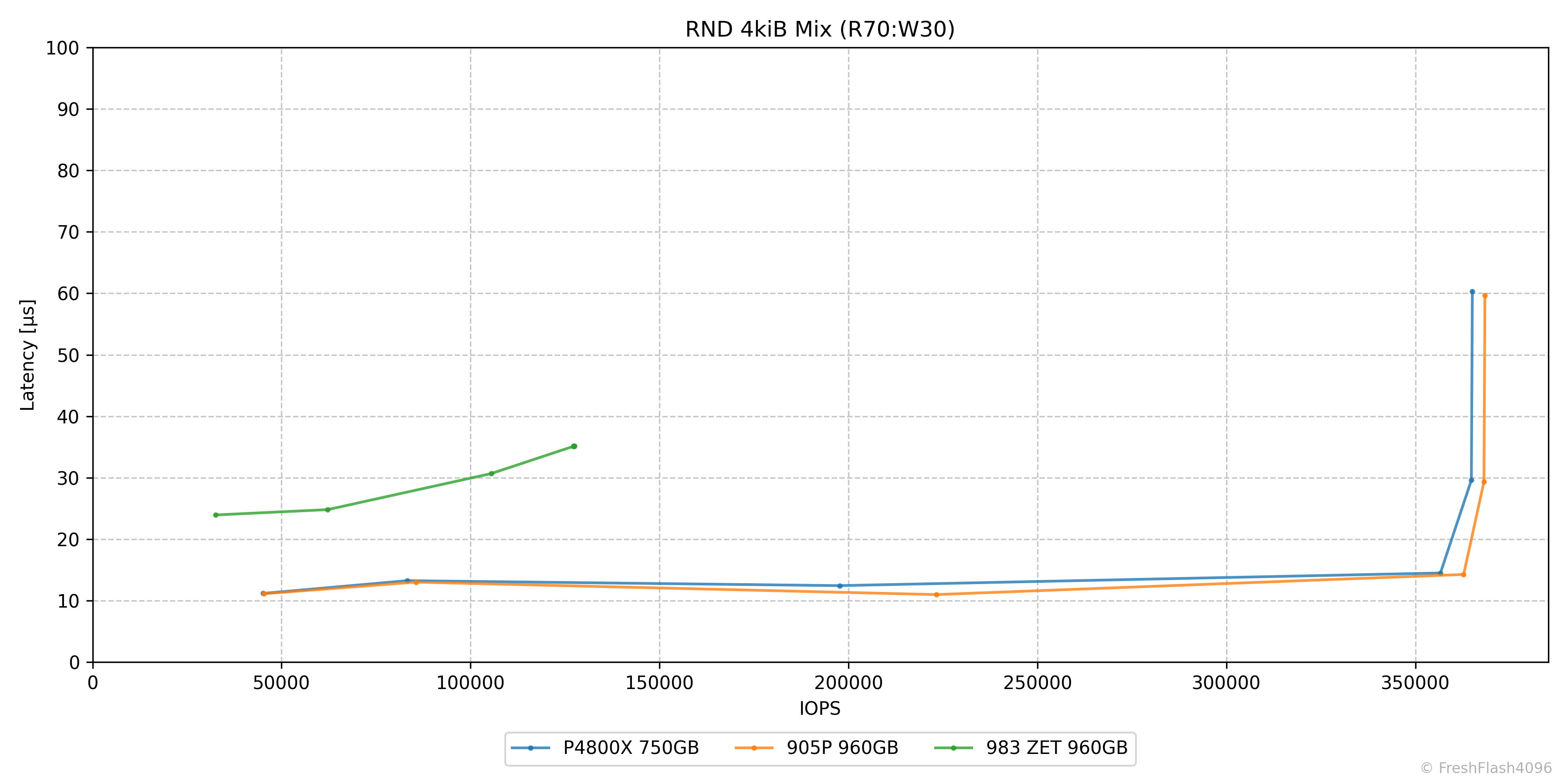 혼합 성능입니다. 쓰기 비율이 30%라서 그런 것일까요? 비교적 정상처럼 보입니다...