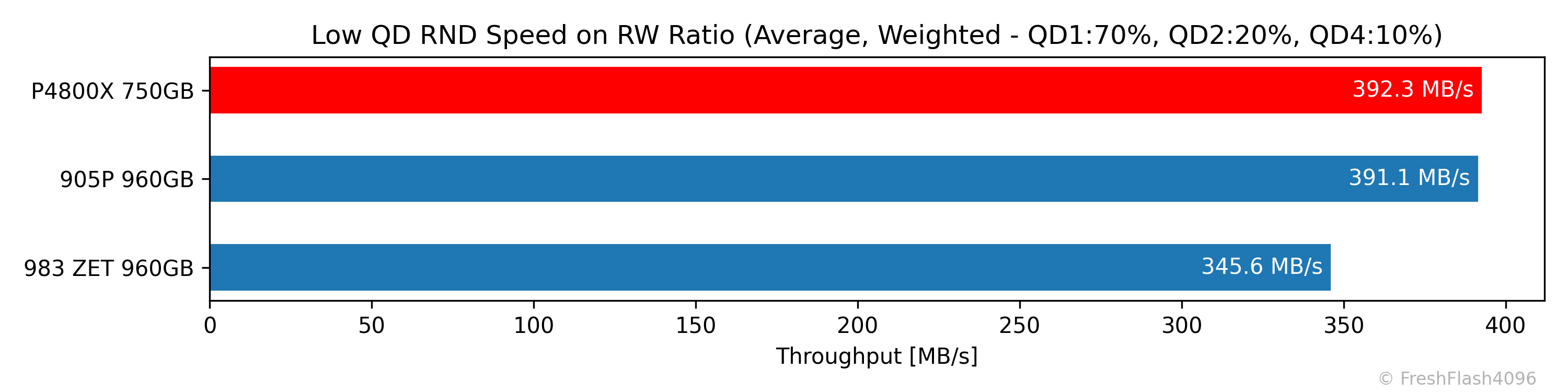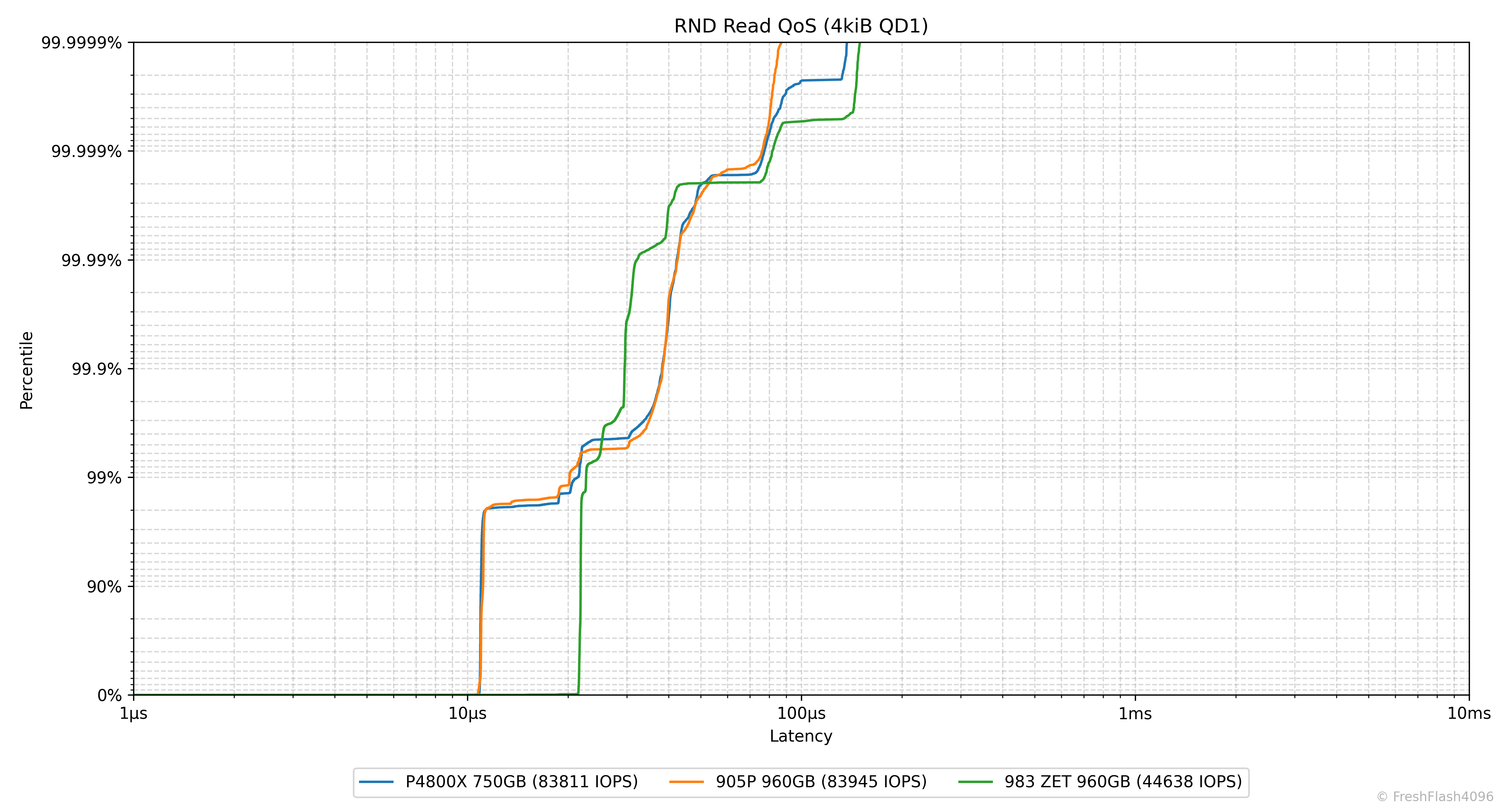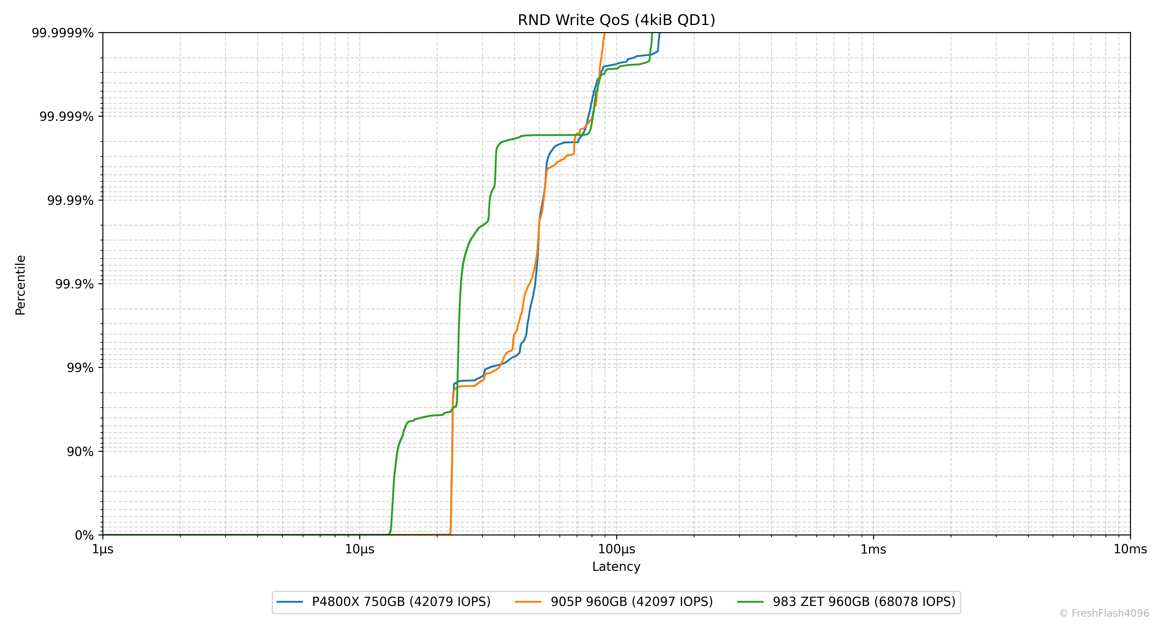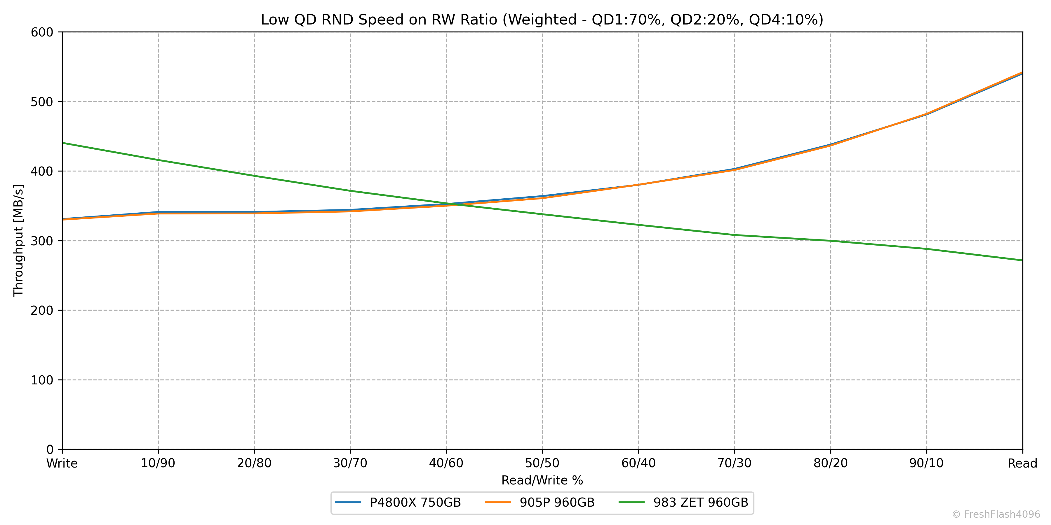 평균값을 낸 결과, P4800X와 905P간에는 거의 동일한 결과였지만, 983 ZET와도 드라마틱한 차이를 벌리진 못했습니다. QD1, QD2 쓰기 성능의 문제를 해결하게 된다면 차이를 벌릴 수 있을 것이라 기대되는데 말이죠.
