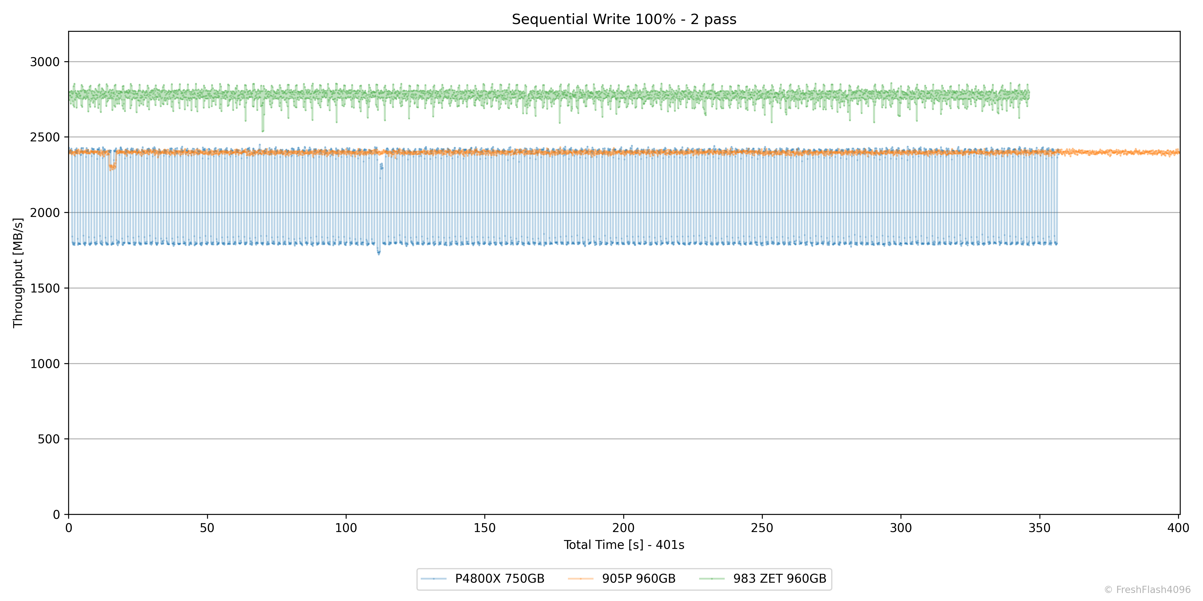 나래온 더티테스트와 비슷한 벤치마크입니다. FOB상태로 시작하여, SEQ 128k QD256으로 드라이브 전체를 2회 채우며, 0.1s 단위로 값을 측정합니다. 휴식은 충분히 부여됩니다.
