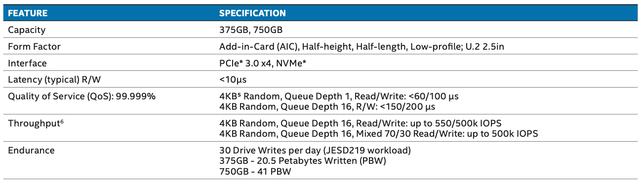 | Intel Optane SSD DC P4800X (750GB, U.2 15mm) | Launch Date: 2017 Q4 |